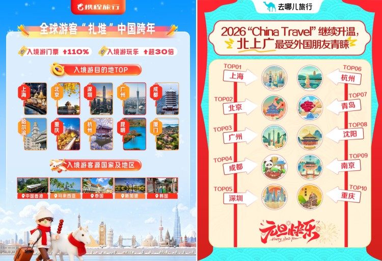 重庆同时上榜去哪儿旅行“2026元旦TOP10热门城市”。